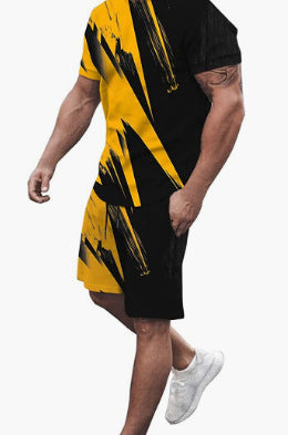 Fashion Personality Men's Casual Printed T-shirt Suit