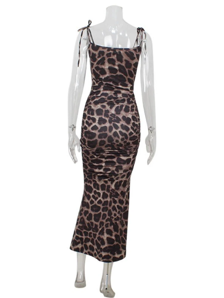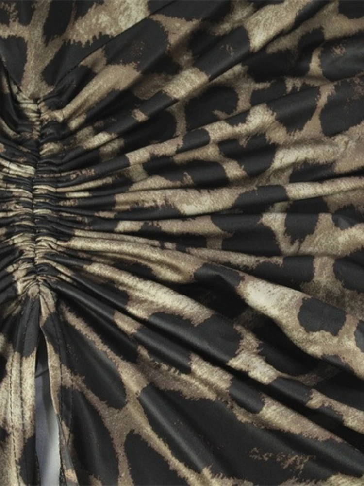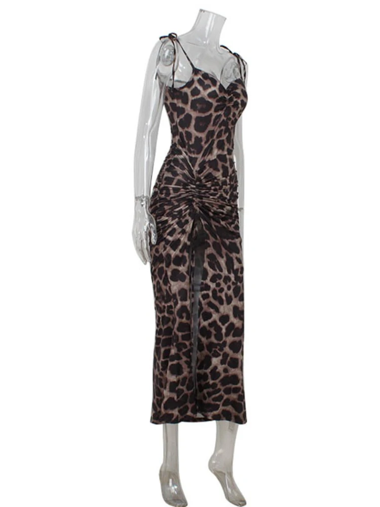 Y2k Leopard Print Maxi Dresses Women New Sexy V-Neck Backless Sling Dress Partywear High Side Split Slim Fit Long Vestidos Robe